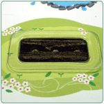 往侧面拉花盆套使之抽出。花盆装有种子和压缩的土壤。 |