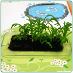 用纸杯倒入一杯水(约 100~150ml)。CARD表面不要沾水。小心倒入的水会倒出来。在花盆上加水时,水的量少,不会发芽。 |