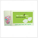 | 本品是一种台式日历,内含种子与植物栽培用底垫,只要浇水就可以栽培植物。可以直接邮寄,还可当作相框使用。最多可以插入7张日历,必要时可以变更组合。使植物长得矮小,延缓植物的成长速度,在栽培期间,可继续传递留言。植物栽培用底垫以天然纤维为原料制作,进出口较容易,由韩国政府开具植物检疫证书,进出口贸易中不会发生有关问题。纸盒用无氯漂白纸浆制作,具有防水功能,无涂层,不粘贴,以便进行再生利用。 |