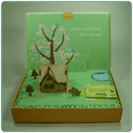 | 让孩子们亲手建筑房屋,又在院子里种植植物。孩子们感到兴趣的是在院子里的井子不是打水的地方,而是把给植物浇的水放入的地方。本品是一种水培用拼盒,内含种子与植物栽培用底垫,只要浇水就可以栽培植物,用拼块拼成房子等建筑物,后面可插入卡片或照片。使植物长得矮小,延缓植物的成长速度,在栽培期间,可继续传递留言。植物栽培用底垫以天然纤维为原料制作,进出口较容易,由韩国政府开具植物检疫证书,进出口贸易中不会发生有关问题。纸盒用无氯漂白纸浆制作,具有防水功能,无涂层,不粘贴,以便进行再生利用。 |