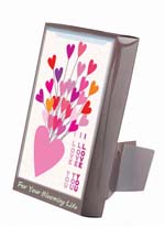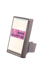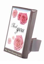 | Sie ist ein ständerförmige Kartentopf, wo die Pflanze wächst, indem man einfach Wasser hinzugibt, weil Saatenen schon in der Karte angepflanzt sind. An der Vorderseite der Karte gibt es Tasche, in die man Botschaftskarte bzw. Fotos einstecken kann. Auf der normalen Schauständer kann man sie 18 Stücke stellen. Sie besteht aus verschiedenen Themen wie das von Geburtstag, Danksagung, Glückwunsch, Liebe, Weihnacht, Neujahr, Valentinstag, Muttertag und Elterntag usw. Saaten wird mitgeliefert, Pfanzen wieder zu züchten. |