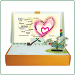 | Als Fotorahmen kann der Benutzer in die Hinterseite ein Foto mit 4x6Zoll oder Postkarte einsetzen. Darüber hinaus kann er eine separate Nachricht auf dem Fachboden hinterlassen. |