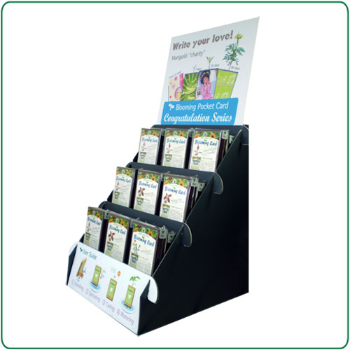| Planting is available just watering to this stand type card flowerpot, because seed has been sowed in it. There is a pocket in the front for message card or photo. 18 sets can be displayed in standard display counter for retail sales. Various subjects are available such as for birthday, thanks, congratulation, love, X-mas, new year, Valentine day, mother’s day, father’s day and etc. Also extra seeds are provided so as to planting again. |